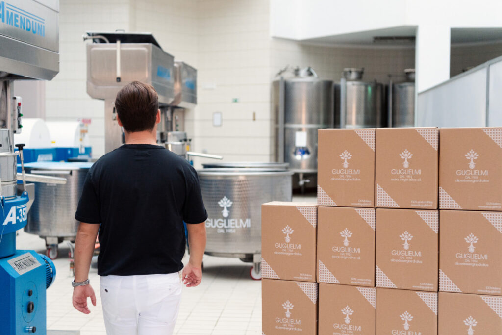 Sau khi ép, dầu được lọc và bảo quản trong bồn thép không gỉ, dưới lớp khí trơ để hạn chế oxy hóa. Nhờ vậy, từng chai dầu Olio Guglielmi không chỉ giữ được màu xanh tươi, hương cỏ mới cắt, mà còn phản ánh trọn vẹn tinh túy của vùng Puglia.